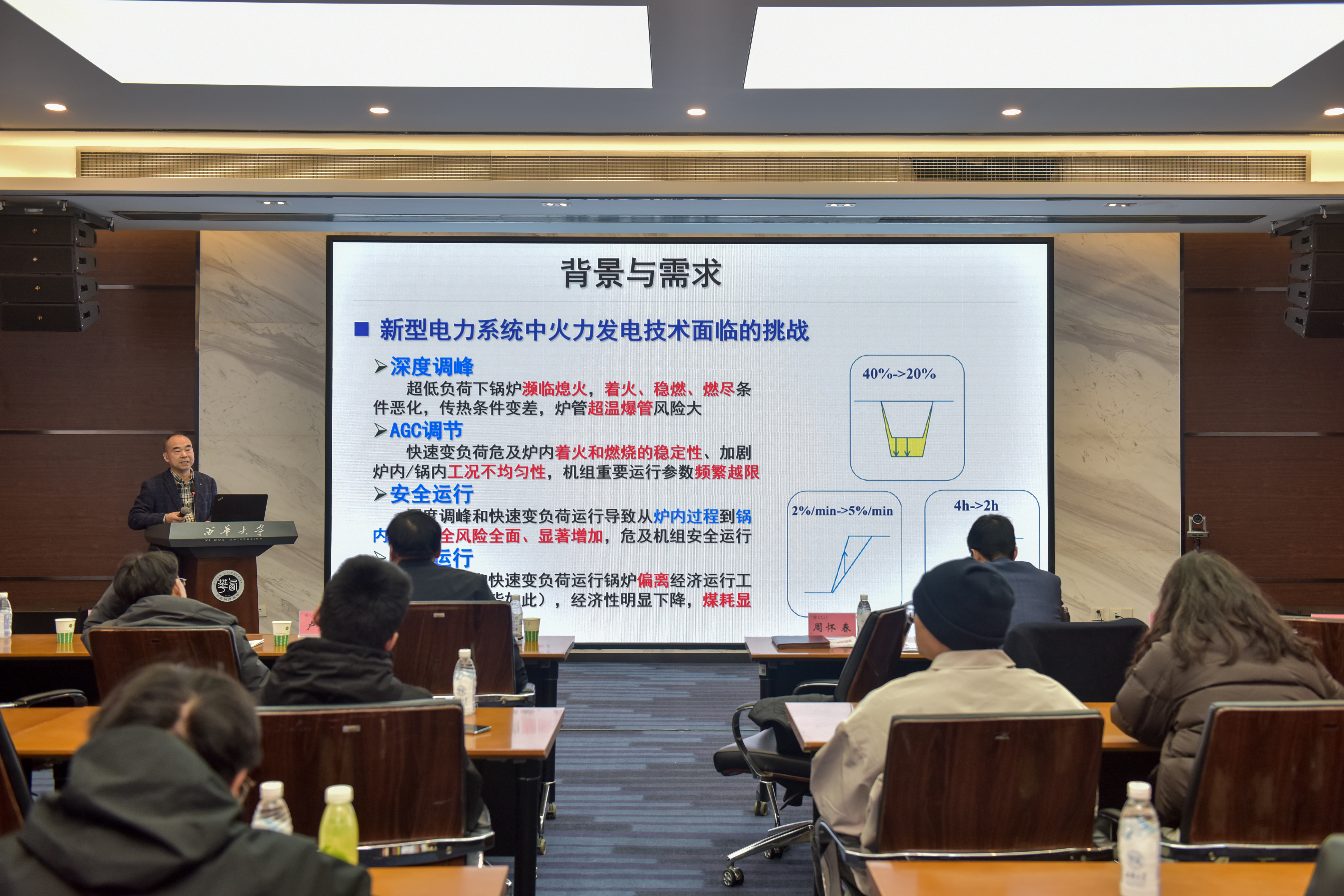 西华大学首席专家、能源与动力工程学院周怀春教授作《燃煤发电机组智能燃烧监控技术》报告。系统介绍了团队自主研发的多光谱火焰成像—声波反演—数据驱动融合诊断系统,已在多家电厂实现规模化应用,显著提升燃烧稳定性与污染物前馈控制精度。