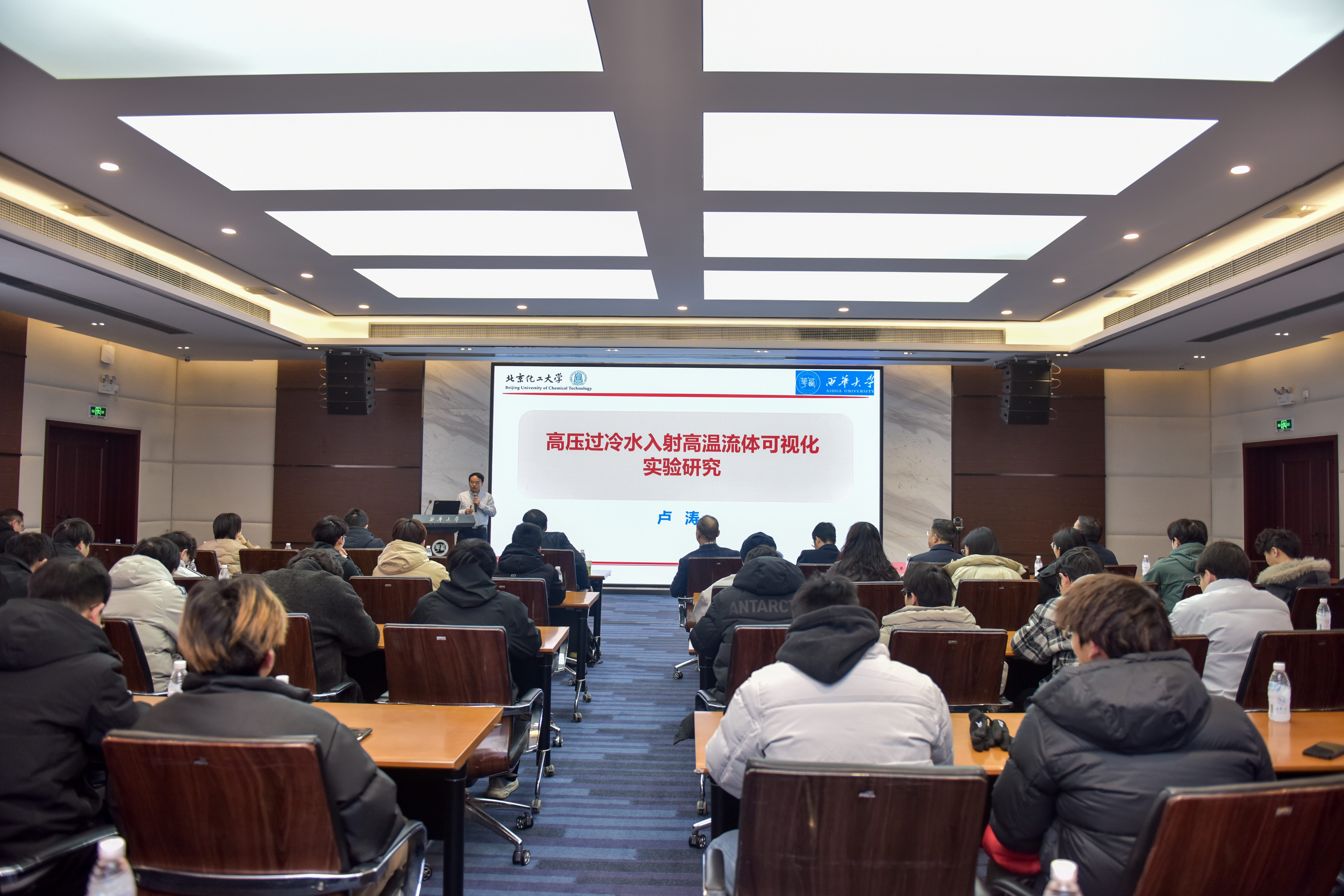 北京化工大学卢涛教授作题为《高压过冷水注入高温流体可视化实验研究》的报告。项目聚焦铅基相关破裂过程的瞬态表征,提出需借助高速摄像技术捕捉瞬态演化特征,为后续机理分析与安全评估提供更可靠的实验依据。该报告从测试手段与观测方法切入,引发与会人员对“瞬态过程可视化、数据获取与解释”等问题的讨论。